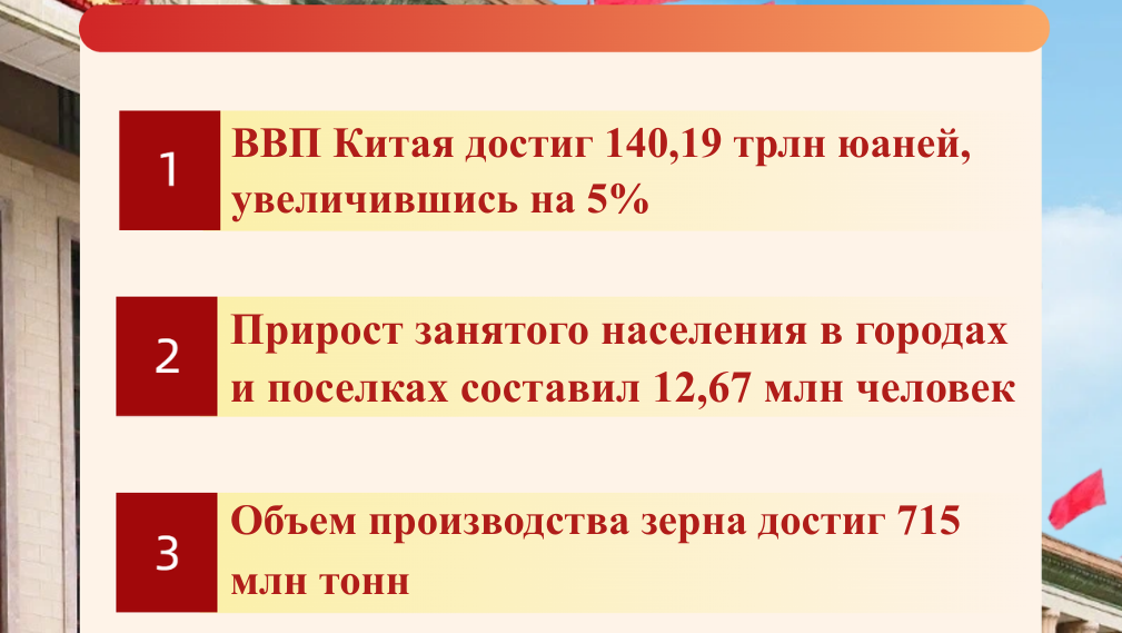 | ВВП Китая достиг 140,19 трлн юаней, увеличившись на 5%; Прирост занятого населения в городах и поселках составил 12,67 млн человек... |