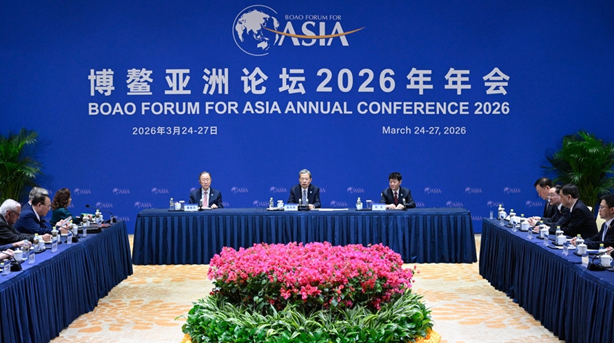 | Председатель ПК ВСНП Чжао Лэцзи в среду в поселке Боао провинции Хайнань провел отдельные встречи с председателем Милли Меджлиса Азербайджана Сахибой Гафаровой и первым заместителем премьер-министра Казахстана Романом Скляром, прибывшими в Китай для участия в совещании БАФ 2026 года. |