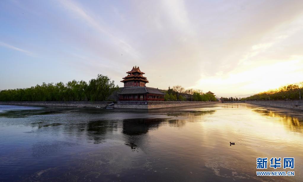 Вечером 12 апреля пейзаж Пекина в лучах заходящего солнца был живописным и красивым.