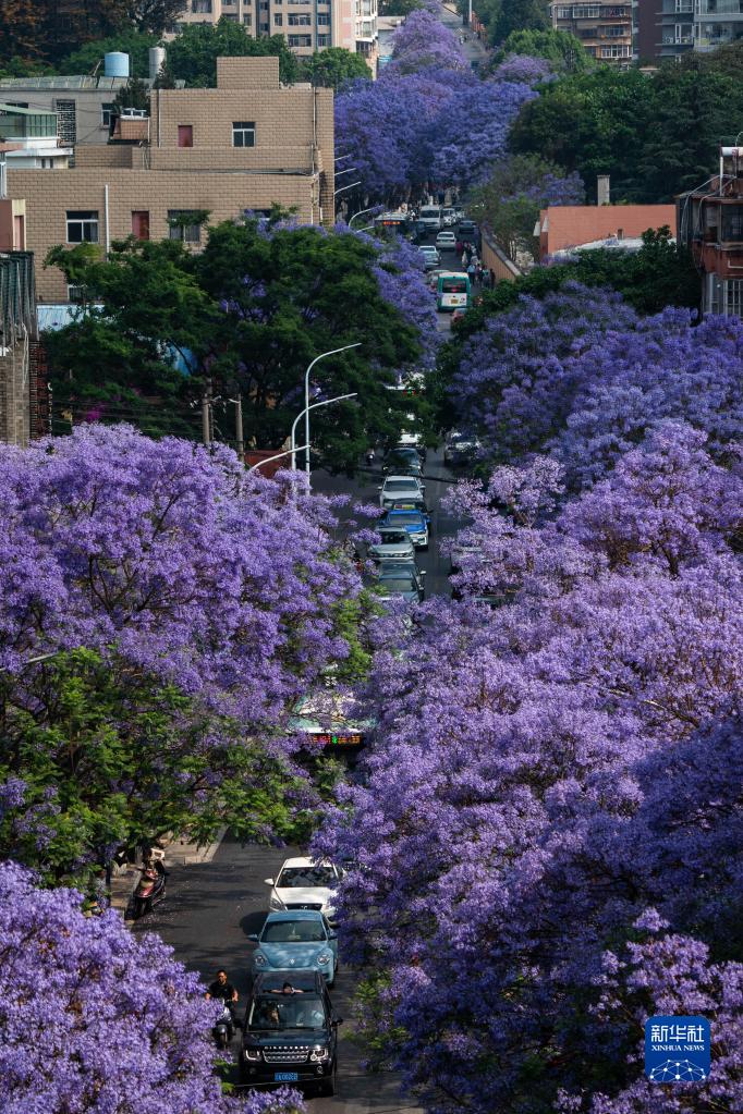 Недавно на улице Цзяочанчжун города Куньмин в провинции Юньнань зацвела жакаранда, привлекая горожан и туристов сфотографироваться на своем фоне и отметиться в соцсетях.