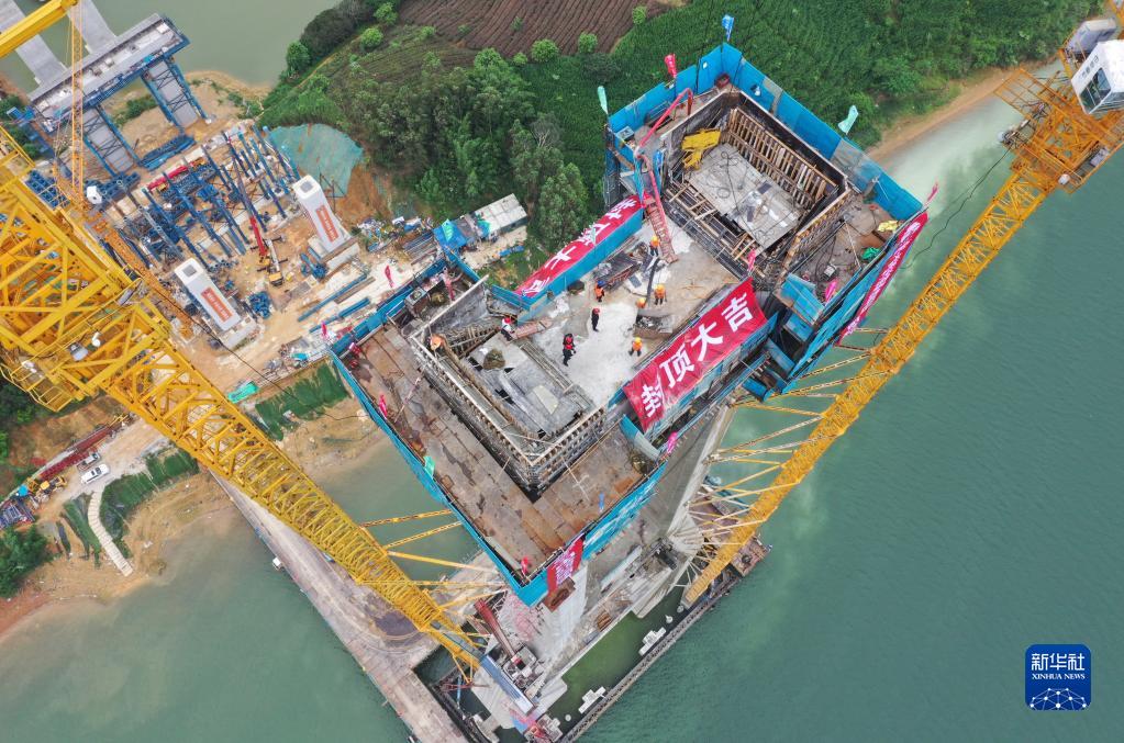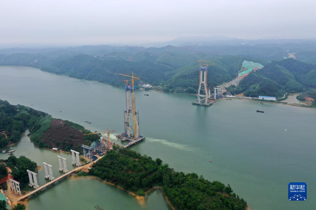 В Гуанси-Чжуанском АР на скоростной автомагистрали Шанлинь – Хэнчжоу закончено возведение главных башен гигантского моста «Сицзинь» через реку Юйцзян