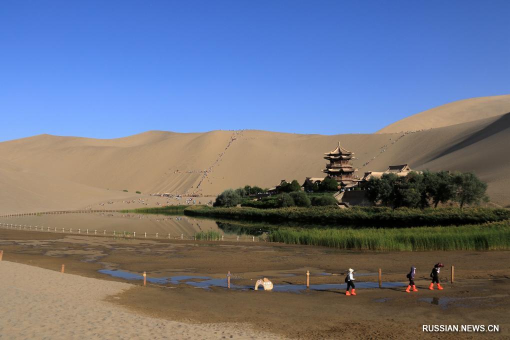Осенний пейзаж в пустыне под городом Дуньхуан на северо-западе Китая
