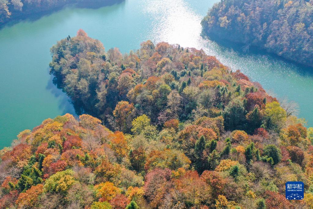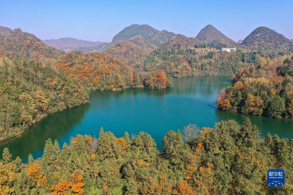 Превосходные виды над озером Ишань на улице Пэнчэн административного района Байли Дуцзюань в городском округе Бицзе провинции Гуйчжоу (фото снято с беспилотника).