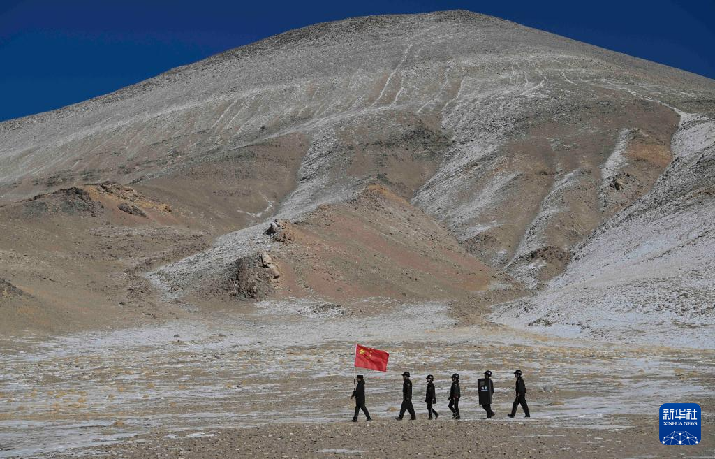 Долэйтиман Кемик (первый) вместе с пограничниками совершает обход (9 января 2025 г.)