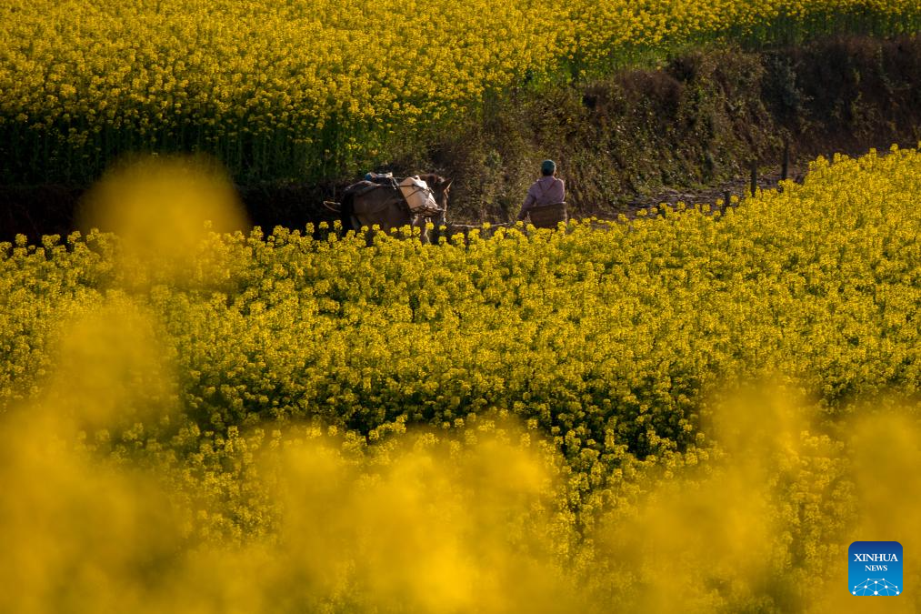 Цветущие поля рапса в уезде Лопин на юго-западе Китая