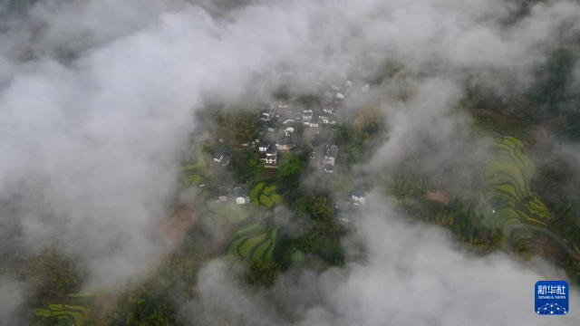 Древняя деревня с прекрасным весенним колоритом под пеленой облаков
