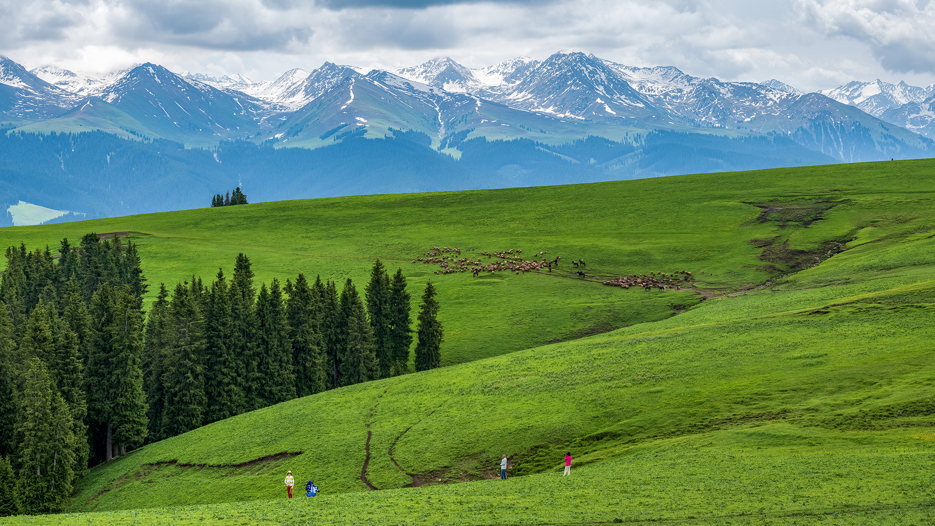 Степь Калацзюнь сочетает луга, леса, заснеженные горы, реки и каньоны, образуя трехмерный и богатый природный ландшафт, который потрясающе красив.
