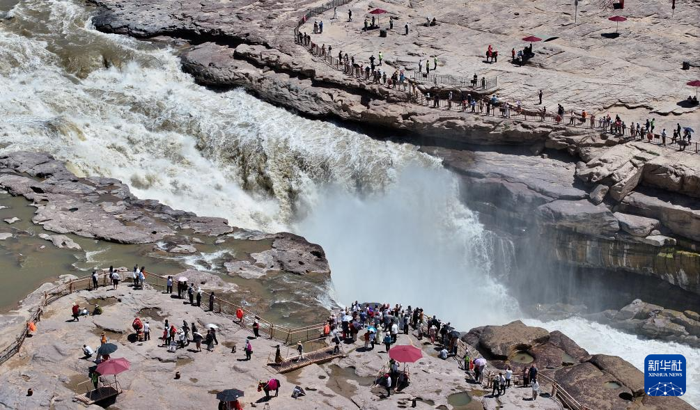 Летом величественные пейзажи туристической зоны водопада Хукоу на реке Хуанхэ, расположенной на территории границы провинций Шаньси и Шэньси, привлекают множество туристов. Фото корреспондента агентства “Синьхуа” Чжан Бовэня.