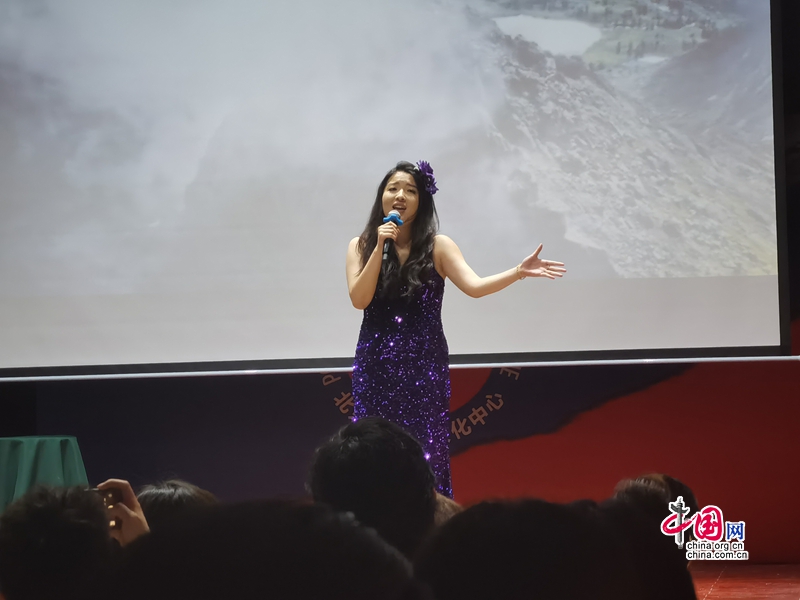 Фото: ученица Курсов русского языка при Российском культурном центре в Пекине выступает с песней «Светлый дым»