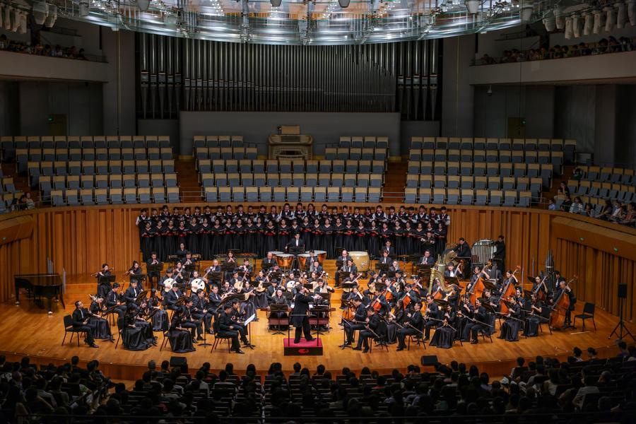 На концерте, посвященном теме "Мир", было исполнено четыре китайских и российских классических произведения, а именно Фантазия-симфония для оркестра народных инструментов фа мажор, Фантазия на темы Рябинина для фортепиано с оркестром, а также "Ода реке Хуанхэ" и "Ода миру" из второй части произведения китайской народной оркестровой музыки "Река Хуанхэ". -0-