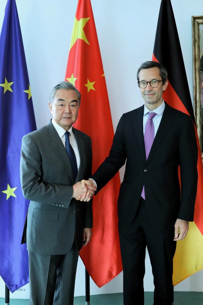 Ван И, также являющийся членом Политбюро ЦК КПК, отметил, что отношения между Китаем и Германией выходят за пределы двустороннего взаимодействия, и выразил надежду, что Германия будет играть конструктивную роль в Европейском союзе для защиты законных прав и интересов обеих сторон и совместного реагирования на вызовы.