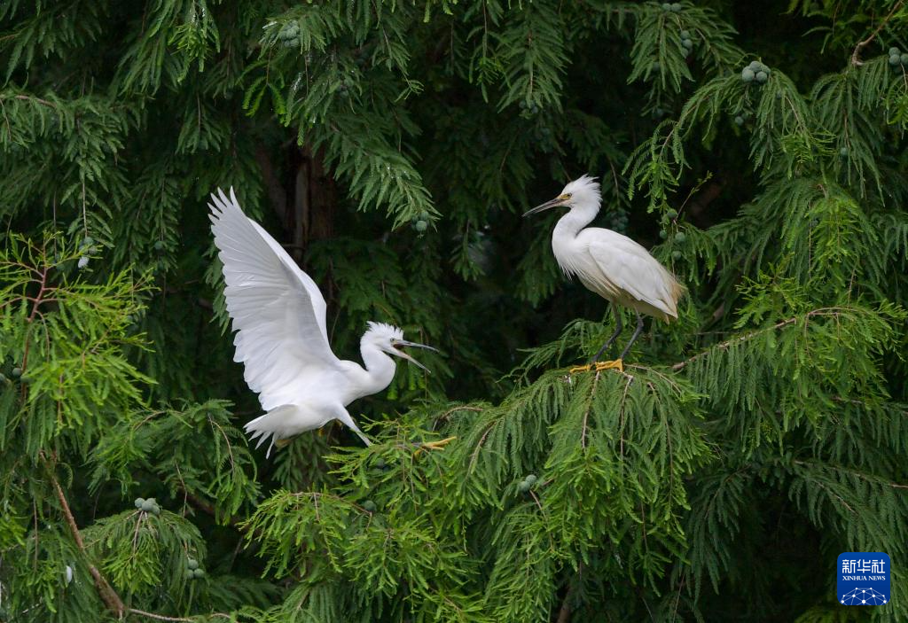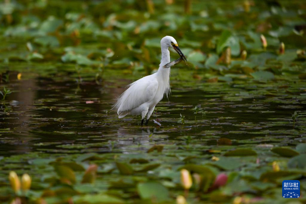 В разгар лета водно-болотный парк «Хайхун» в районе Дяньчи в городе Куньмин привлекает малых белых и серых цапель обилием водных растений, рыбы и креветок. В последние годы этот заболоченный парк стал важным местом обитания и размножения цапель. Картина с парящими над водой птицами представляет собой пример экологичной гармонии высокогорных водно-болотных угодий.