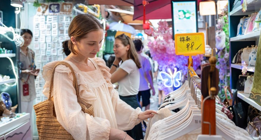 21 июля 2025 года, российская туристка выбирает одежду в одном из магазинов Шанхая. /Фото: Синьхуа/