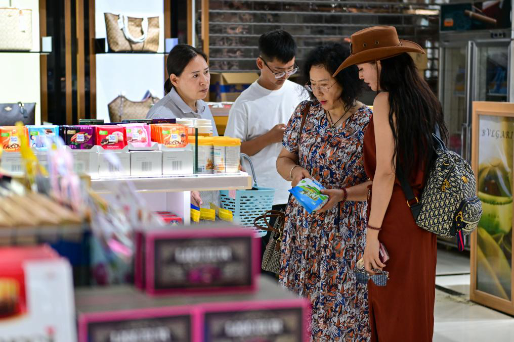 Неоновые вывески зажигаются, и на пешеходной улице Биньхэлу в Хоргосе толпятся люди из разных стран. Короткая пешеходная улица длиной около 500 метров наполовину состоит из магазинчиков с товарами народного потребления и наполовину из гастрономической зоны. На прилавках торговых точек можно увидеть ассортимент со всех уголков страны: головные уборы, очки, гироскутеры, аудиоаппаратура, часы, массажеры для фасций и так далее.