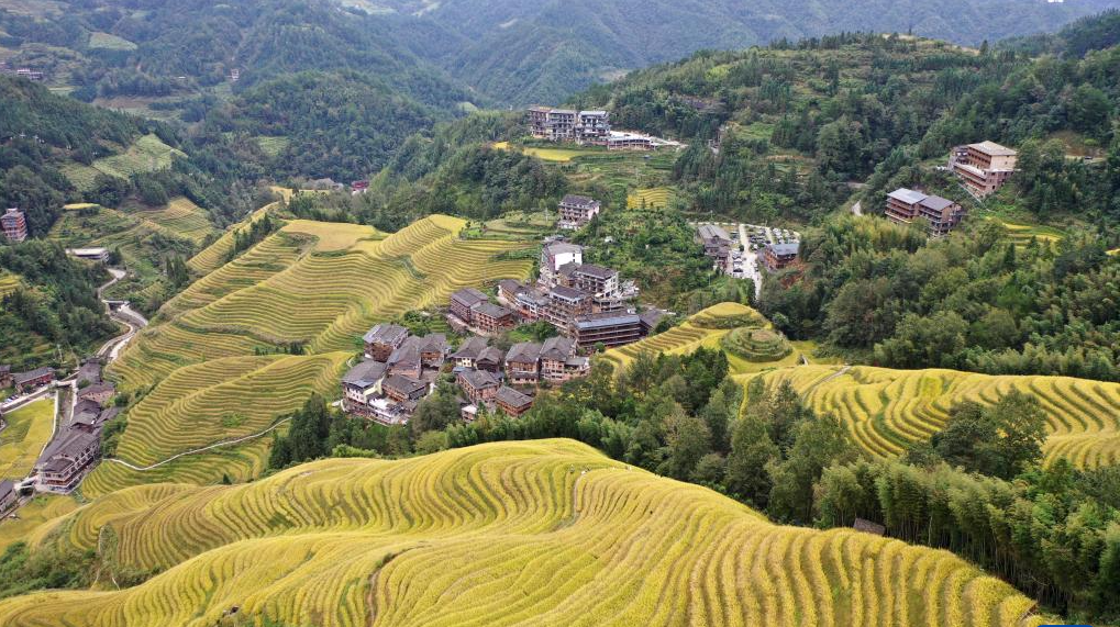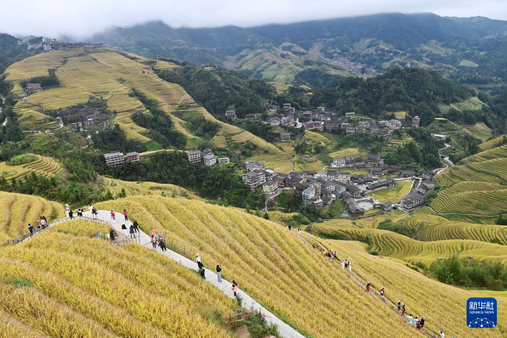 В настоящее время золотистые террасовые поля Лунцзи, расположенные в многонациональном автономном уезде Луншэн Гуанси-Чжуанского автономного района, стали популярным местом для туристов. Террасы Лунцзи насчитывают более чем 2300-летнюю историю и признаны Продовольственной и сельскохозяйственной организацией ООН (ФАО) важным объектом мирового сельскохозяйственного наследия. Фото корреспондента информационного агентства «Синьхуа».