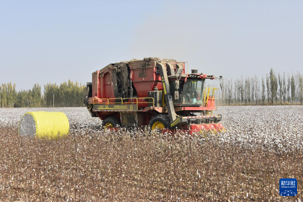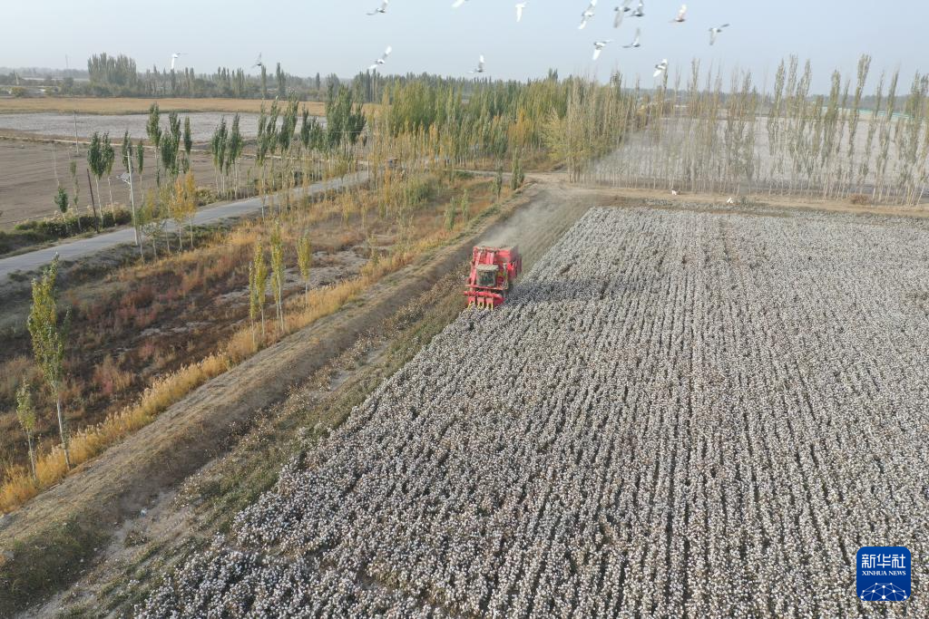В золотую осень в октябре 187 миллионов му (около 12,47 тыс. га) хлопковых полей в уезде Шая Синьцзян-Уйгурского автономного района достигли пика сбора урожая, белоснежное хлопковое море простирается до горизонта. Несколько крупных хлопкоуборочных комбайнов снуют между рядами, собирая, накапливая, прессуя в тюки и выгружая хлопок-сырец, на полях царит оживленная картина сбора урожая.