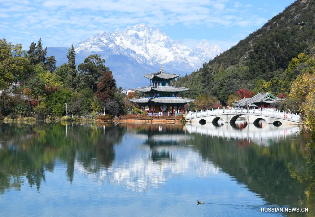 Лицзян /пров. Юньнань/, 30 ноября /Синьхуа/ -- На территории города Лицзян провинции Юньнань /Юго-Западный Китай/ заснеженные горы Юйлун и леса у подножия гор дополняют друг друга, создавая потрясающе красивую картину под зимним солнышком.