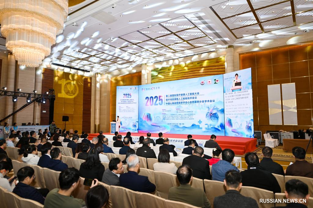 8 ноября 2025 года, на фото запечатлена церемония открытия 2-й международной конференции по искусственному интеллекту в области медицины и здравоохранения в городе Тяньцзинь /Северный Китай/. /Фото: Синьхуа/