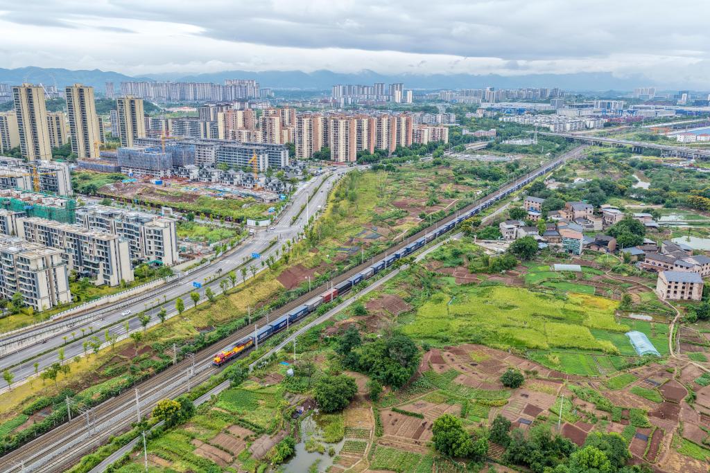 8 сентября 2025 года, грузовой поезд Китай-Европа покидает отправную станцию Туаньцзецунь в городе Чунцин /Юго-Западный Китай/. /Фото: Синьхуа/