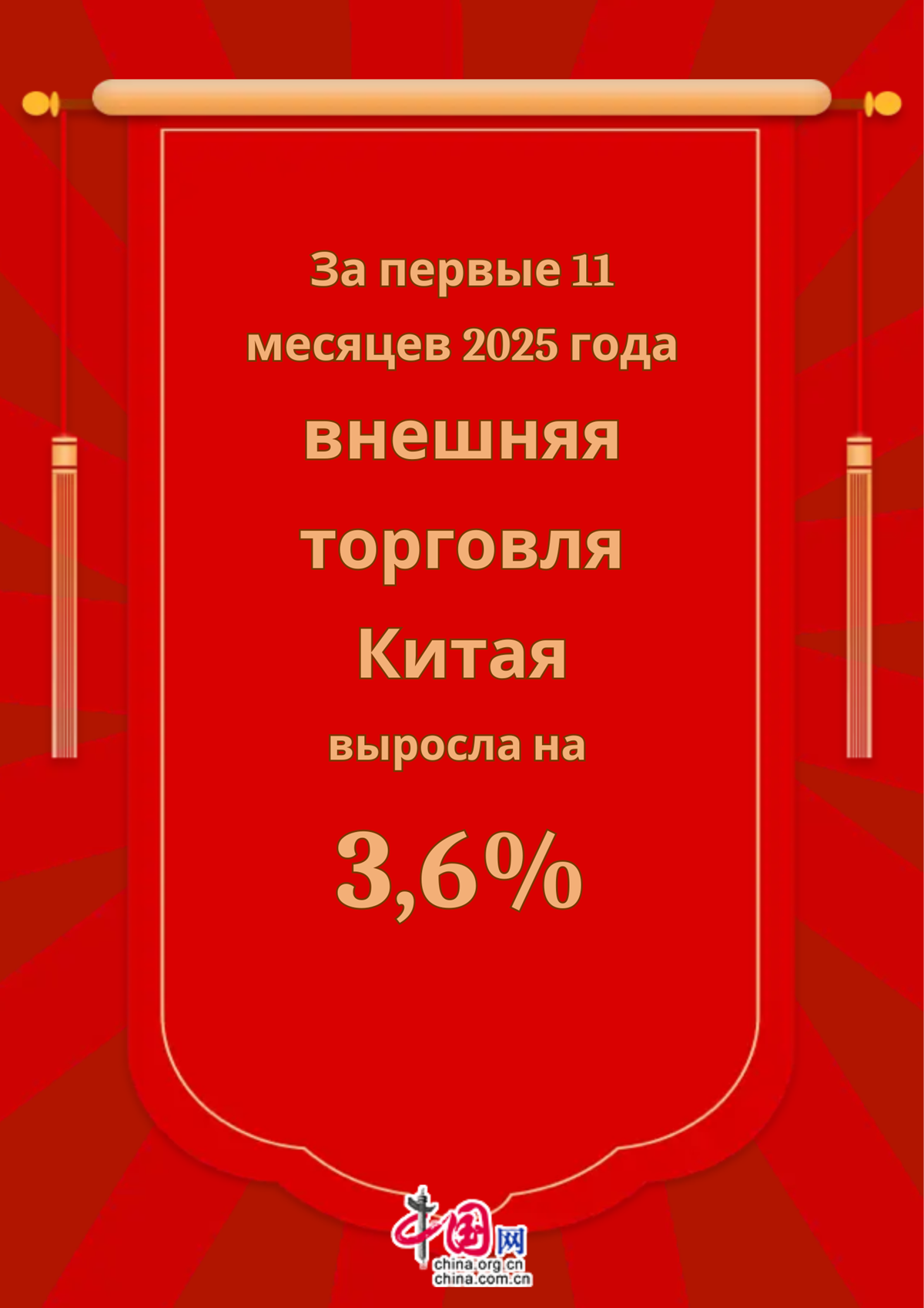 За первые 11 месяцев 2025 года внешняя торговля Китая выросла на 3,6 проц.