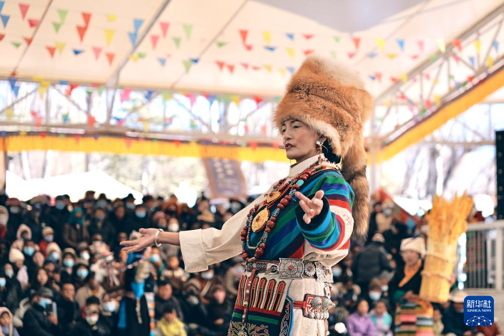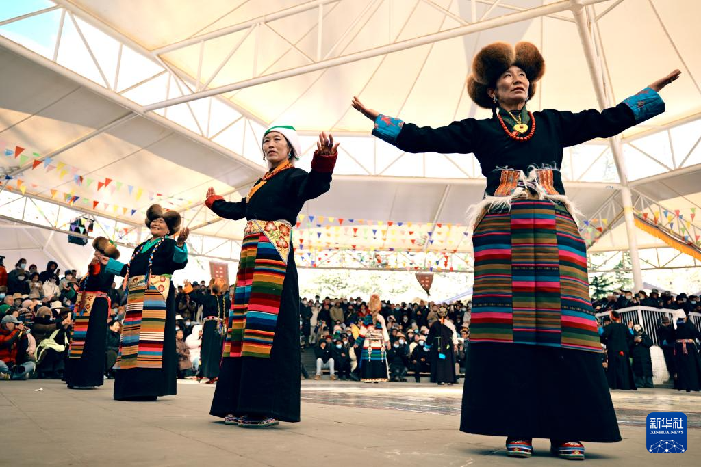 2 января на массовом культурном мероприятии «Лхасский новогодний показ одежды», организованном Управлением по делам культуры и туризма Лхасы, 16 женщин-скотоводов из различных районов и уездов Лхасы вышли на подиум в традиционных костюмах. Фото корреспондента информационного агентства «Синьхуа».