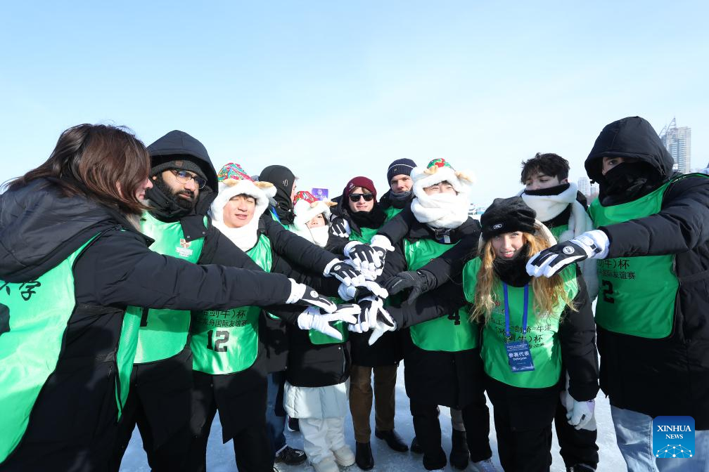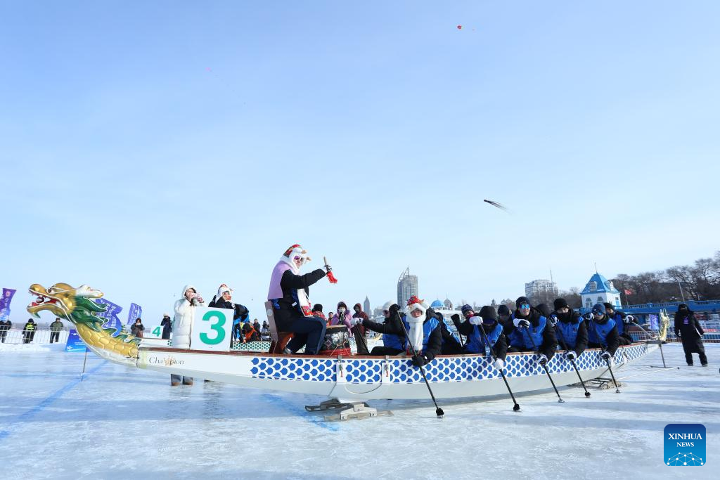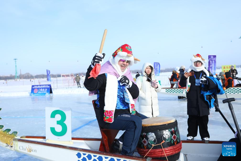 Харбин, 11 января /Синьхуа/ -- В субботу холодный воздух над замерзшей рекой Сунхуацзян /Сунгари/ в северо-восточной китайской провинции Хэйлунцзян наполнился радостными криками, когда студенты элитных китайских и британских университетов приняли участие в первой в своем роде гонке на лодках-драконах на льду /ice dragon boat race/.