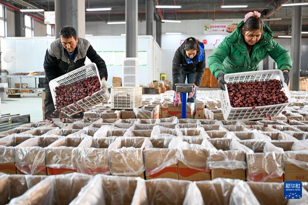 По мере приближения Праздника Весны в Синьцзяне наступает сезон активных продаж новогодних товаров. Такие местные сельскохозяйственные продукты как хэтяньский тонкокорый грецкий орех, красные финики и другие, становятся популярным выбором потребителей по всему Китаю.