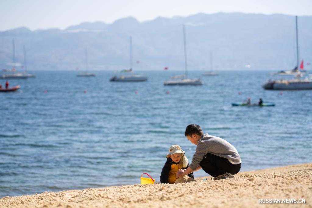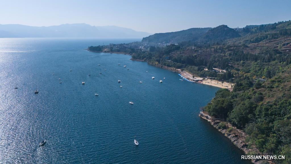 Юйси /пров. Юньнань/, 28 января /Синьхуа/ -- Зимой озеро Фусянь, расположенное в городе Юйси провинции Юньнань /Юго-Западный Китай/, своими приятными пейзажами привлекает множество туристов.