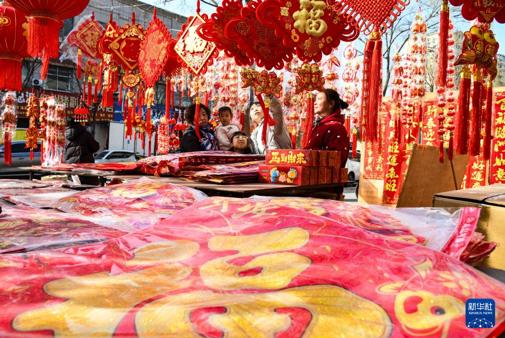 В период праздника Весны жители Китая выбирают праздничные украшения и новогодние товары, готовясь ко встрече Нового года.