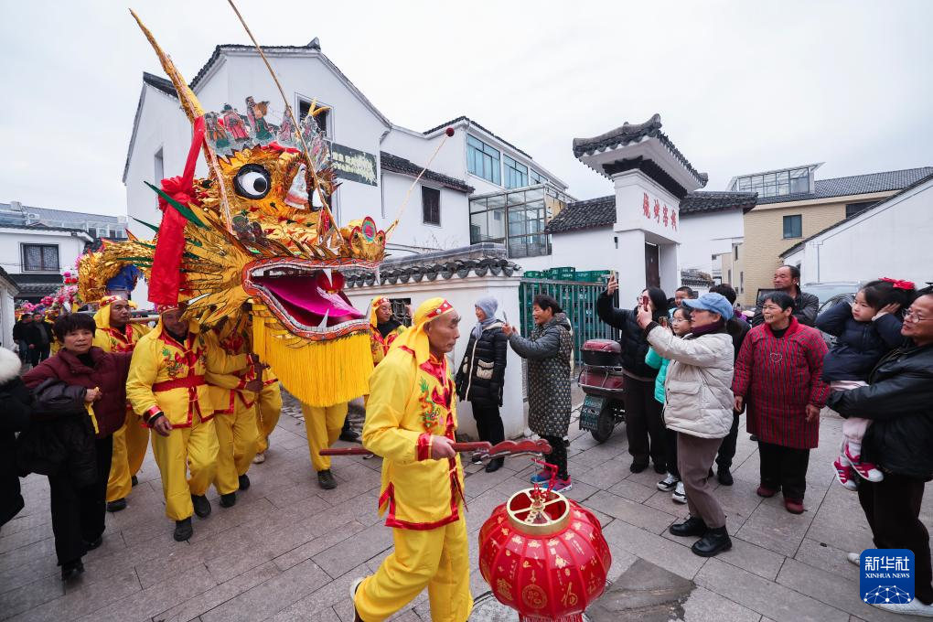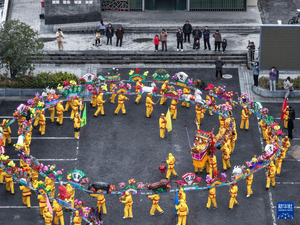 На днях в поселке Чжаоцзя города Чжуцзи провинции Чжэцзян прошло традиционное народное мероприятие – шествие дракона на скамейке по случаю праздника Весны. Более 80 скамеек-фонарей, украшенных фигурами 12 животных китайского гороскопа и персонажами оперы, соединили в 100-метрового дракона. Он прошествовал по улицам поселка и площади, добавив предстоящему празднику Весны яркий традиционный колорит и оживленную атмосферу. Чжуцзиский дракон на скамейке появляется в основном во время новогодних и храмовых праздников. Тело дракона состоит из множества соединенных скамеек, украшенных фонарями в виде различных животных и фигур.