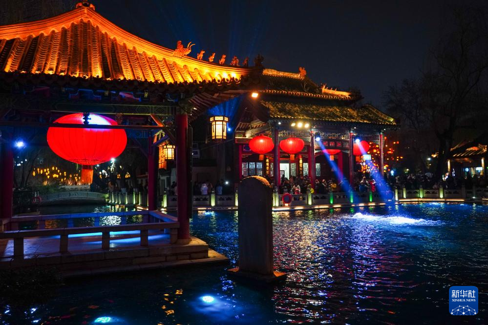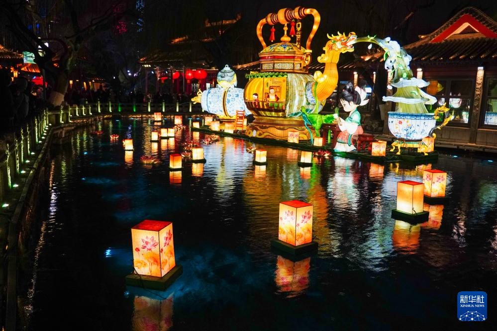 В преддверии праздника Фонарей в живописной зоне «Первого источника в Поднебесной» города Цзинань провинции Шаньдун зажигаются яркие, разноцветные фонари самых разных форм. Их сияние, отражаясь в прозрачной воде источника, наполняет город праздничной и радостной атмосферой.