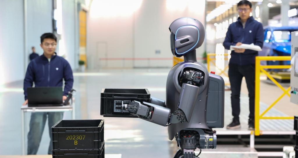 Инженер частной компании в Уси провинции Цзянсу настраивает человекоподобного робота (снято 22 марта 2025 года). По состоянию на конец мая 2025 года в Китае насчитывалось 185 млн частных экономических организаций, что составляло 96,76% от всех хозяйствующих субъектов.