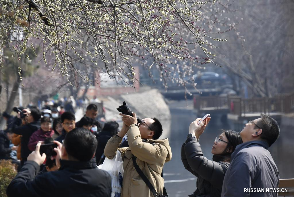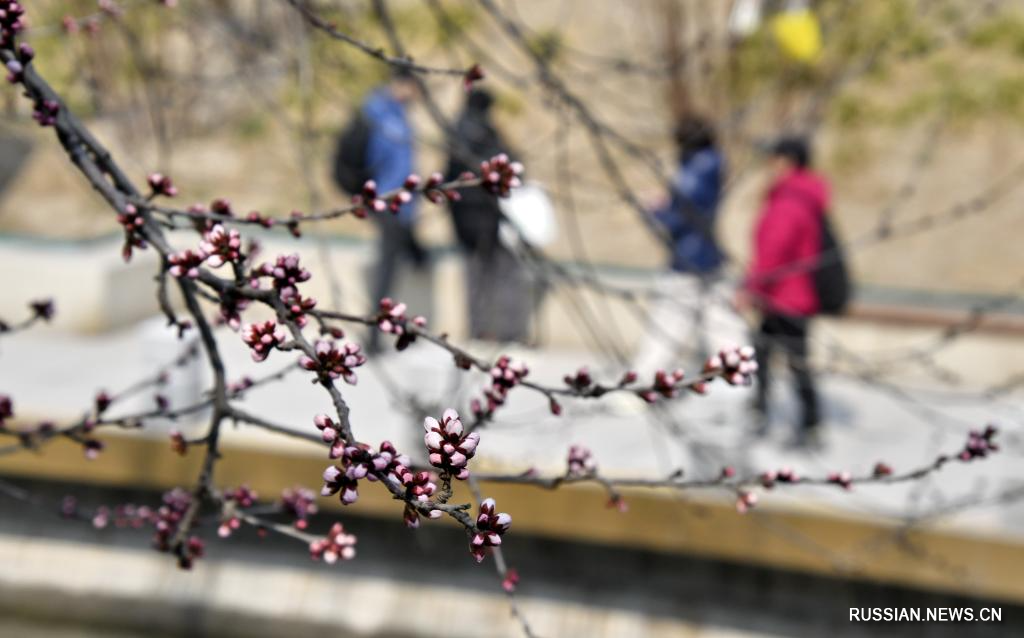 Пекин, 9 марта /Синьхуа/ -- По мере постепенного повышения температуры в пекинском районе Чаоян распустились цветы персика, что привлекает большое количество людей.