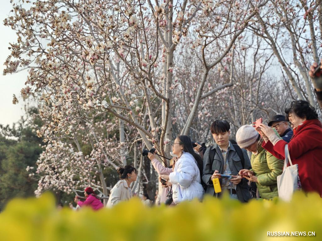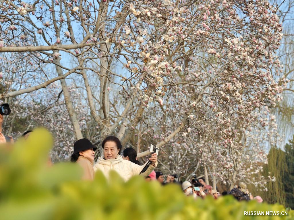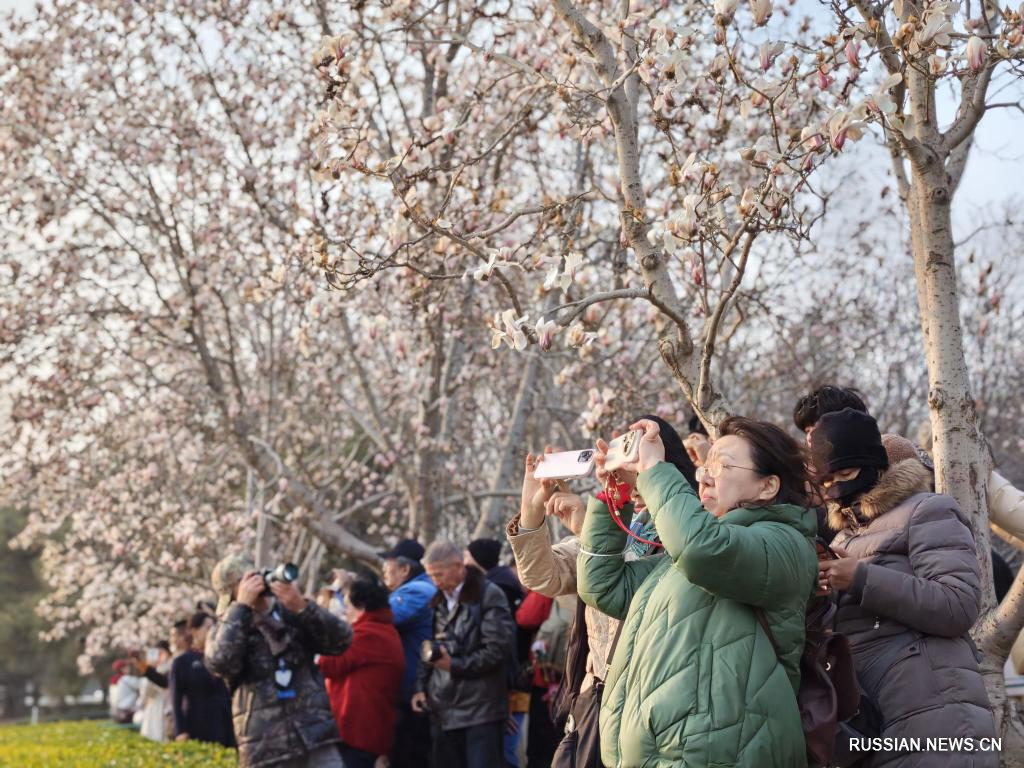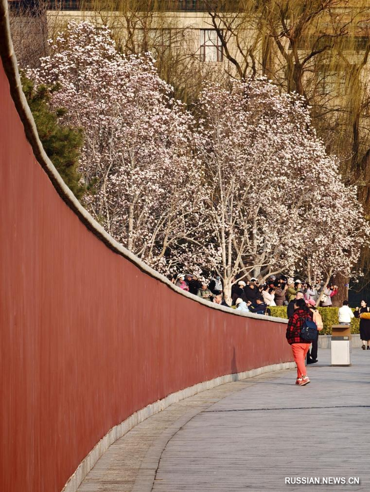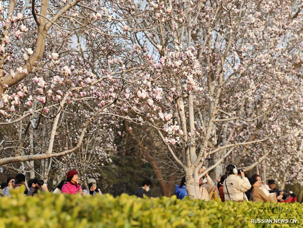 Пекин, 13 марта /Синьхуа/ -- По мере потепления в Пекине распускаются цветы магнолии.