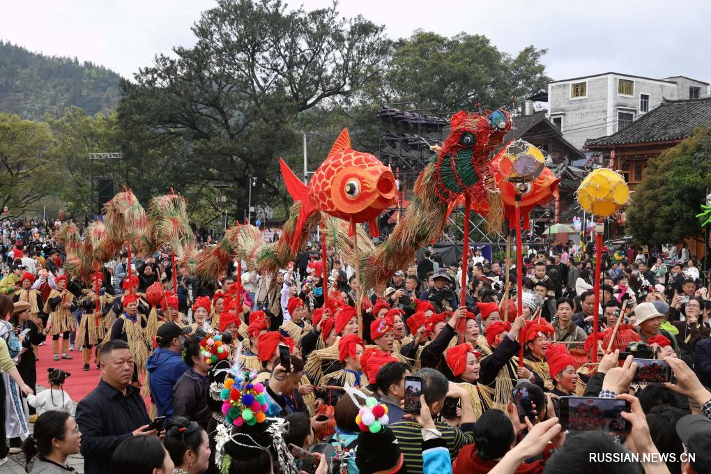 Представители национальности дун отмечают Фестиваль богини Сама на юго-западе Китая