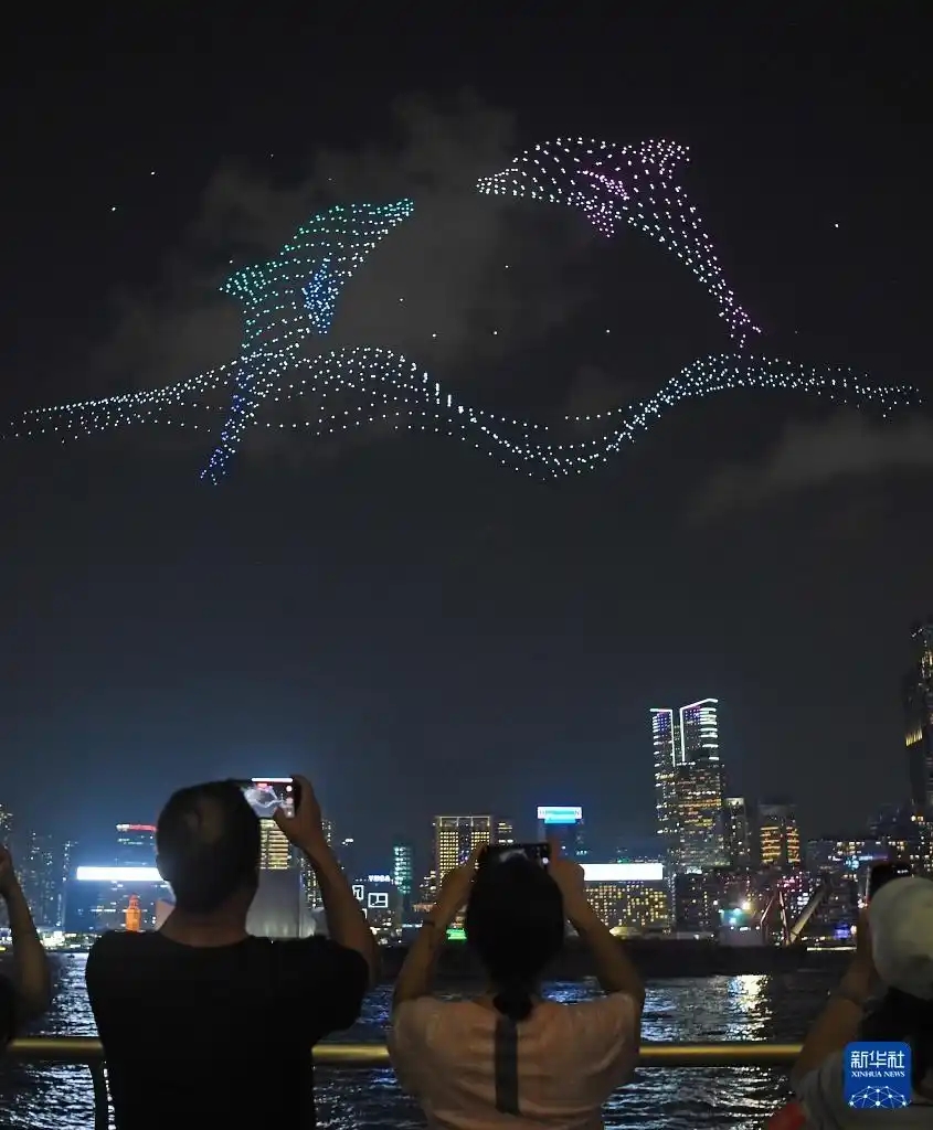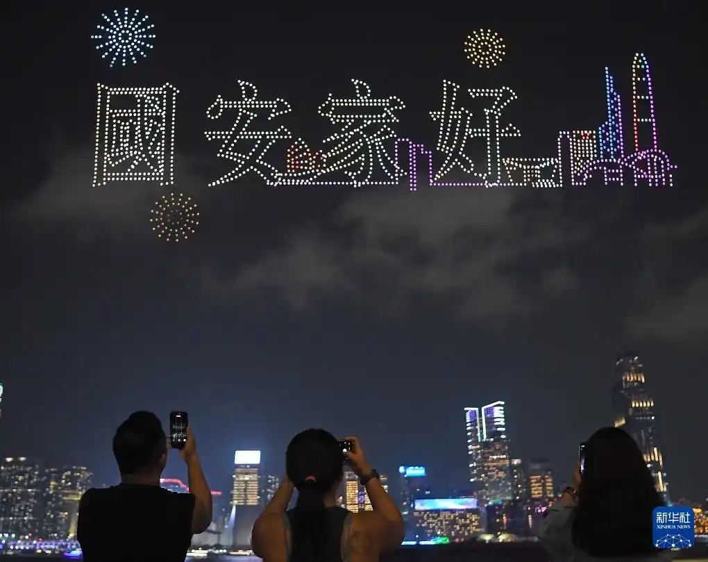 В День просвещения в области национальной безопасности крупное световое шоу дронов осветило ночное небо Сянгана