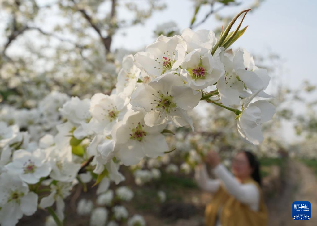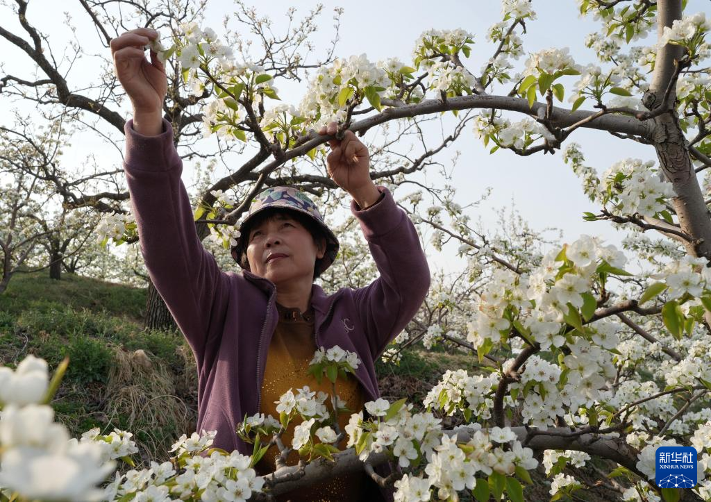 В последние дни в городе Цяньань провинции Хэбэй постепенно расцветают грушевые деревья. В разгар сезона местные садоводы занимаются прореживанием цветов и искусственным опылением, превращая сады в живописный весенний пейзаж. Фото корреспондента информационного агентства «Синьхуа» .