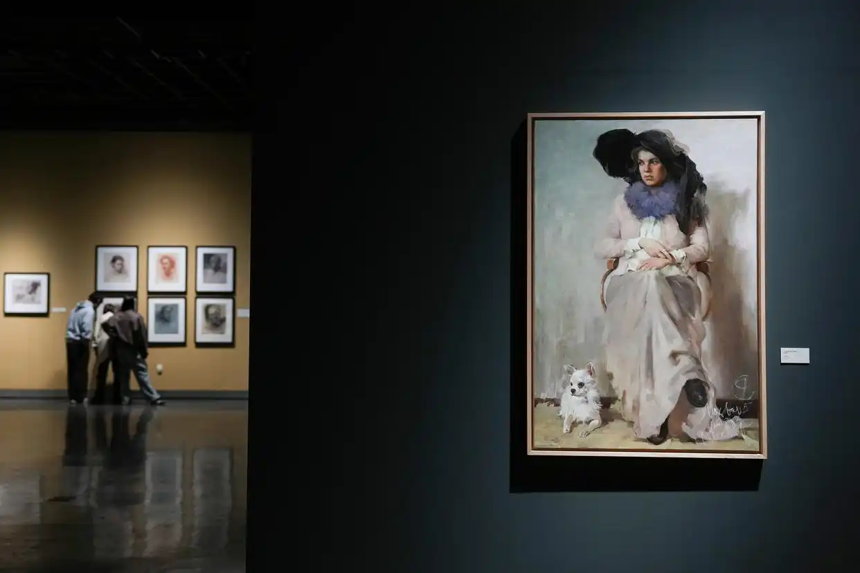 Молодой человек сам был студентом указанной прославленной российской академии художеств. На выставке, которая официально открылась в среду и продлится до 10 мая 2026 года, представлено более 200 отобранных работ педагогов и учащихся Санкт-Петербургской академии художеств имени Ильи Репина, созданных примерно за последние 20 лет. Среди авторов картин такие знаменитые российские художники, как Владимир Песиков, Александр Быстров и Юрий Калюта.