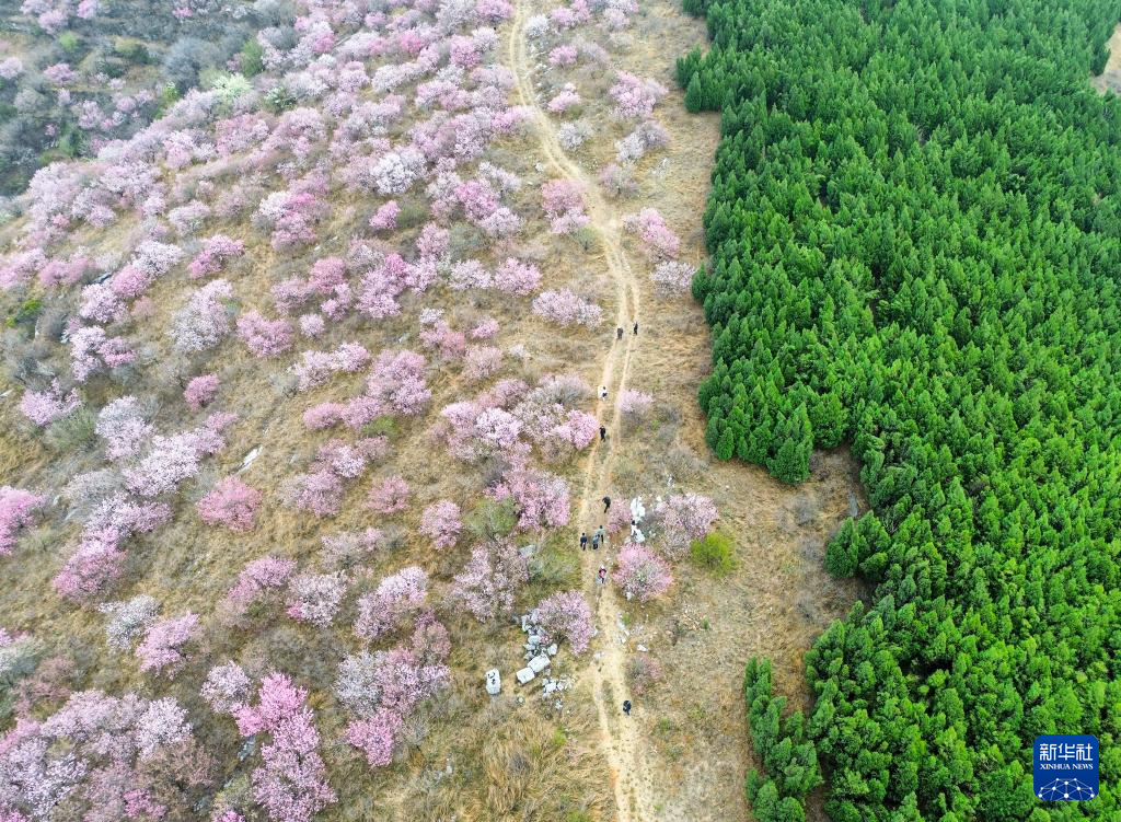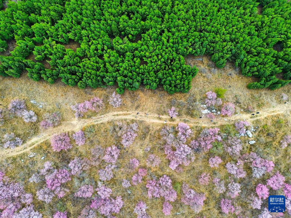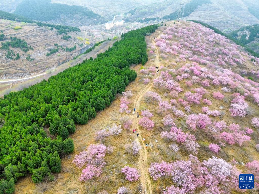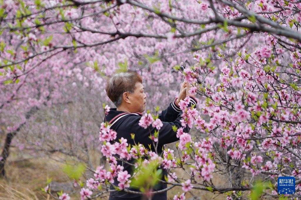 В настоящее время в деревне Шанцзяо, расположенной в поселке Шима района Бошань города Цзыбо провинции Шаньдун, начался сезон цветения персиковых деревьев. Нежно-розовые цветы персика создают живописный контраст с зелеными соснами на противоположном склоне, создавая необычный весенний пейзаж. Фото корреспондента информационного агентства «Синьхуа» .