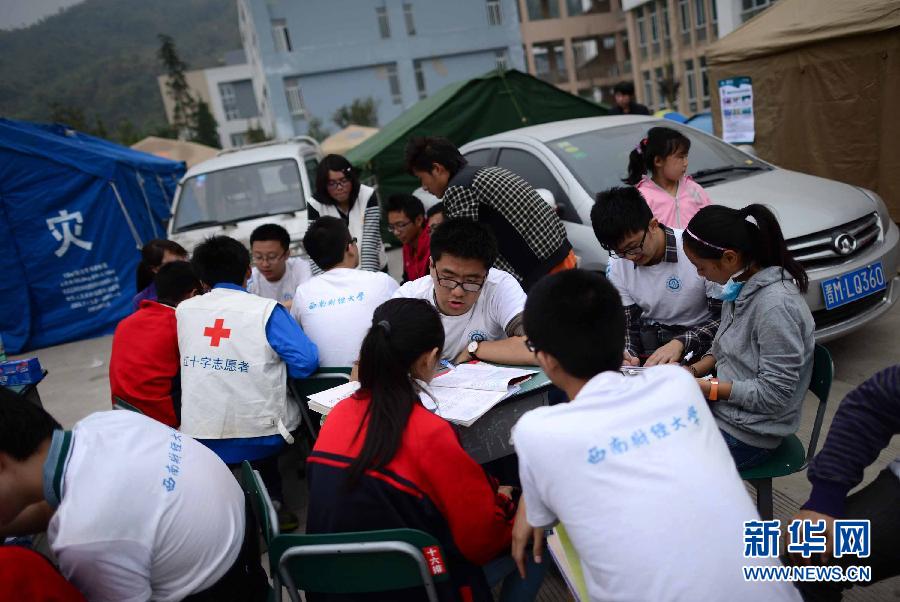 22 апреля, 17 студентов-добровольцев из Юго-Западного университета финансов и экономики приехали пострадавший район Сычуаня, чтобы преподавать в школе Лушань. Они начали занятия в палатках, так как школы пострадавших районов ещё полностью не восстановлены.