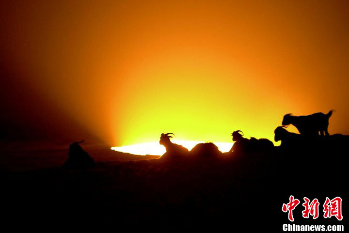 Кратер, расположенный в окрестностях посёлка Дарваза в Туркменистане, в котором уже более сорока лет горит природный газ.