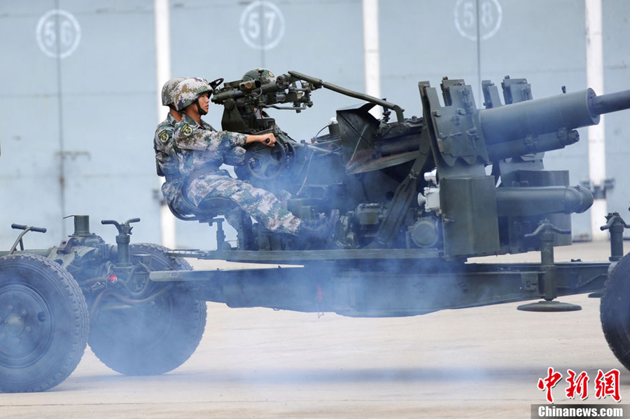 На фото: Зенитно-артиллерийская рота в процессе тренировки