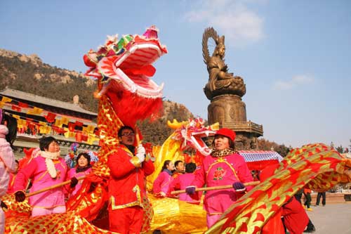 Мероприятия на храмовой ярмарке в честь Праздника Весны в достопримечательности Чишань города Вэйхай