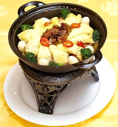 Деликатесы в самоваре Ипинь Жители гор Хуаншань зимой любят употреблять «деликатесы в самоваре». Название данного блюда - Ипинь, оно готовится особым образом. На дно самовара кладутся сухие ростки бамбука, сверху - куски мяса, затем - сырой или жареный тофу, на него кладутся фрикадельки, в последнюю очередь – вермишель из крахмала. В самом конце добавляются листки шпината или другая зелень и приправы, бульон. Самовар на умеренном огне кипит определенное время и блюдо готово.