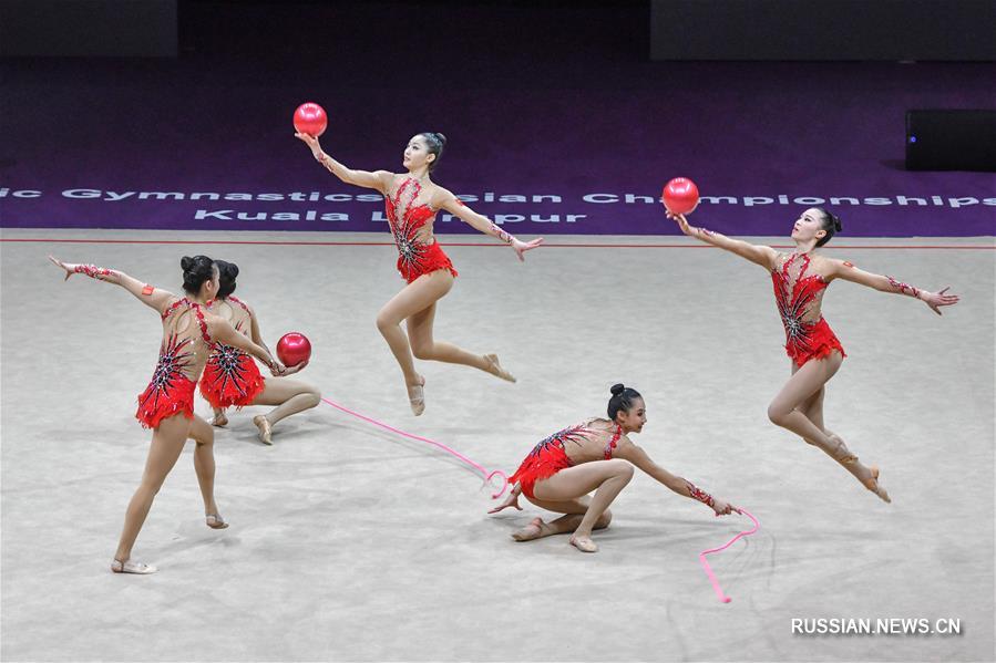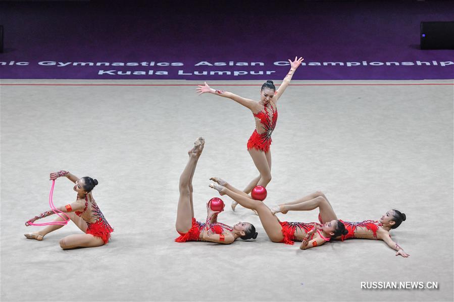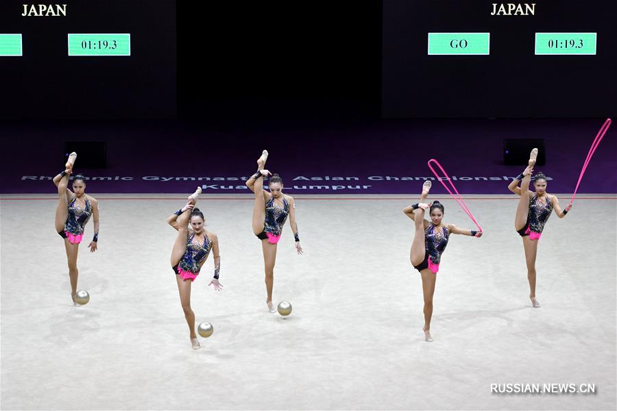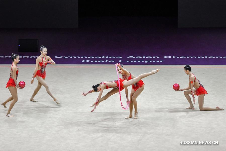 Куала-Лумпур, 30 апреля /Синьхуа/ -- На проходящем в столице Малайзии Куала-Лумпуре чемпионате Азии по художественной гимнастике 2018 года сегодня прошли соревнования в групповом многоборье. Чемпионский титул завоевала команда Японии, второе место у команды Китая, третье -- у команды Казахстана. (Синьхуа/Чжан Вэньцзун)
