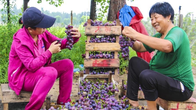 Юнцин, 14 августа /Синьхуа/ -- Деревня Бинцзяо в уезде Юнцин /провинция Хэбэй, Северный Китай/ широко известна благодаря выращиваемому здесь винограду. Площадь местных виноградных плантаций составляет около 333,3 га, а ежегодные доходы от продажи винограда достигают около 30 млн юаней /примерно 4,37 млн долларов США/.