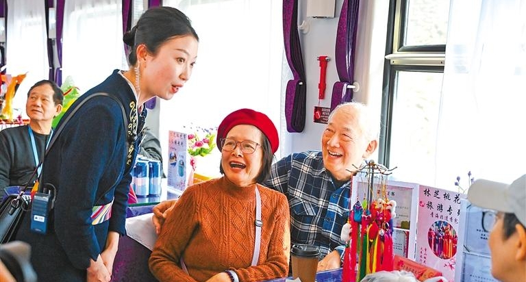 Туристический поезд «Великолепный Цинхай — счастливый Сицзан» прибыл в Ньингчи в сезон цветения персиковых деревьев