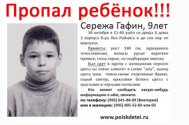 Девятилетний Сережа Гафин потерялся вечером 30 октября - накануне бабушка забрала его на выходные из интерната. 1 ноября у него день рождения и мальчик уже предвкушал подарок - мобильный телефон.