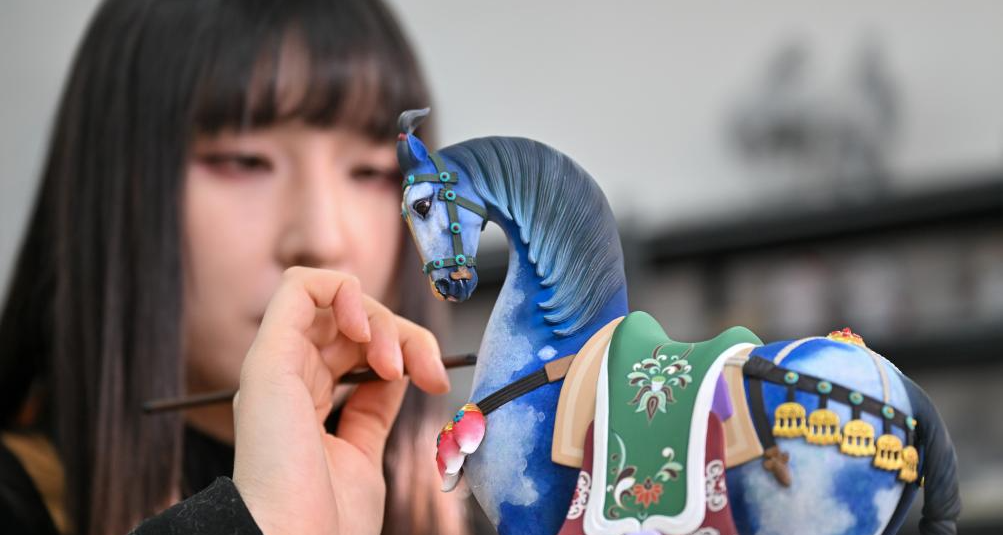 Мастера нематериального культурного наследия «Глиняные статуэтки Чжан» искусно создают скульптуры лошади — символа года