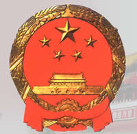 Председатель Мао Цзэдун обнародовал его. Государственный герб КНР изображает трибуну Тяньаньмэнь, озаренную созвездием из пяти звезд и обрамленную колосьями